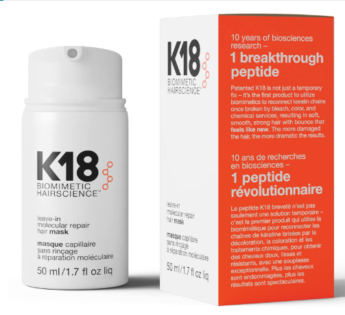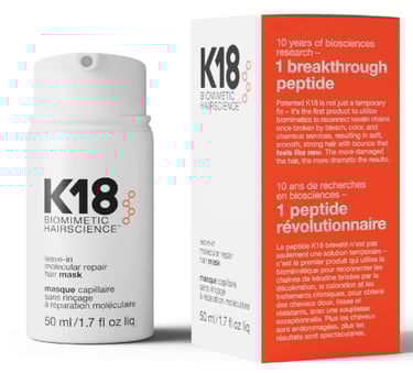 K18 Leave-In Molecular Hair Mask – Repair & Reverse Damaged Hair Transform dry, damaged hair with K18 Leave-In Molecular Hair Mask. Clinically proven to repair and reverse damage from bleach, color, chemical services, and heat, this lightweight treatment restores strength, softness, and resilience. Leaves hair healthier, smoother, and more manageable with lasting results.